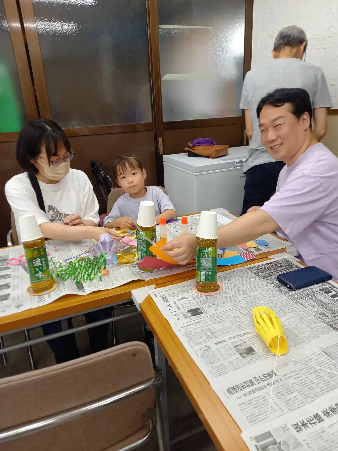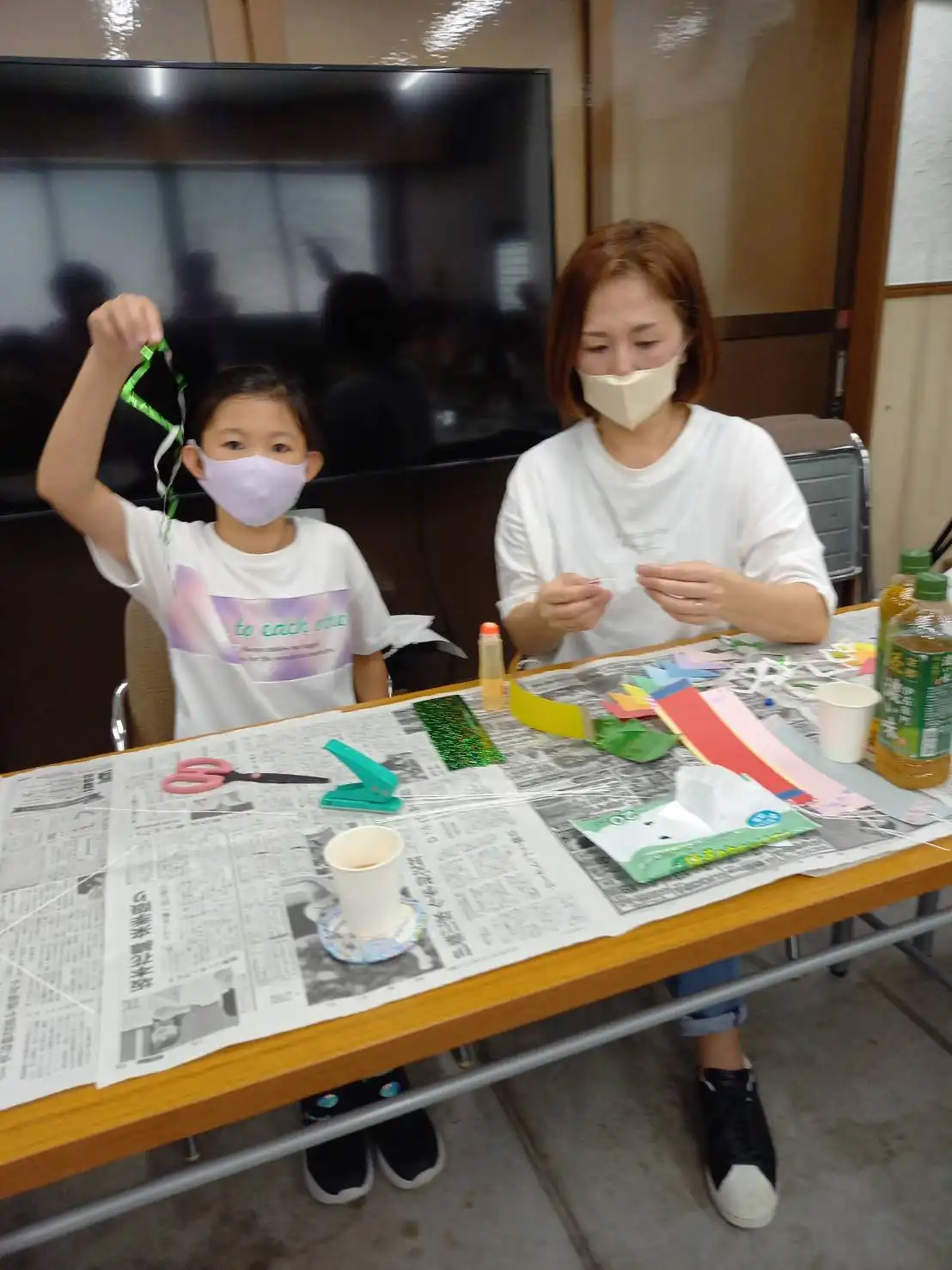 6月28日 厚生福祉部、子供部で七夕飾りを作製し、町内会館前に飾りました。